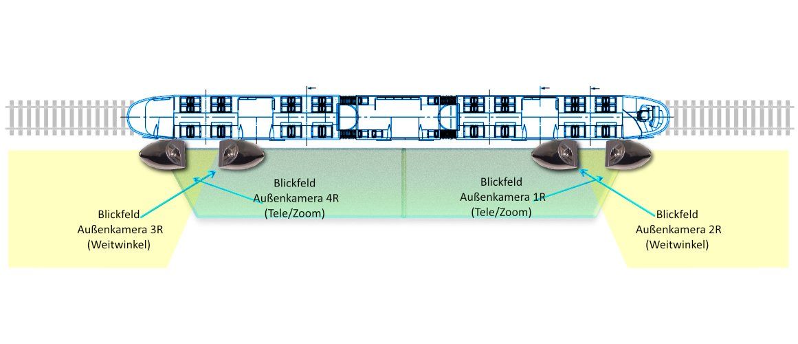 The rearview mirror system uses analog cameras and monitors to achieve the lowest possible latency. To keep an optimum view of both the first right-hand door and cars parked at the side of the road, an additional exterior camera is used. This avoids blind spots and gives the driver a better estimate of whether he will be able to pass the parked car without damage.
